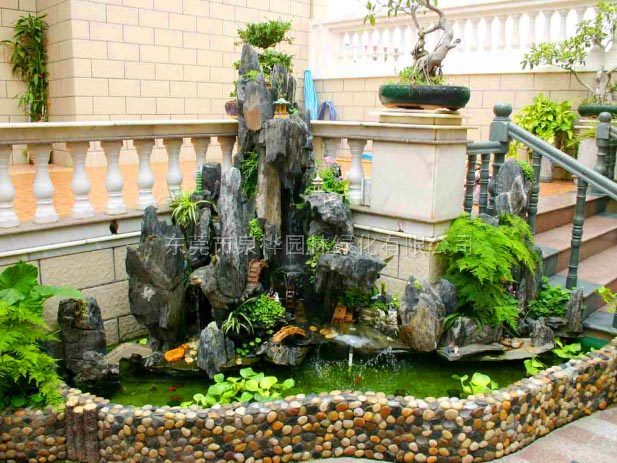 6.假山水池设计要注意山水结合,相映成趣。假山水池建成后,在假山水池前面或左右,可挖土筑池。以精巧细腻的艺术手法理好水景,用太湖石和黄石驳岸,把假山水池上的流水引入池中,使水得山而活,山得水而媚。